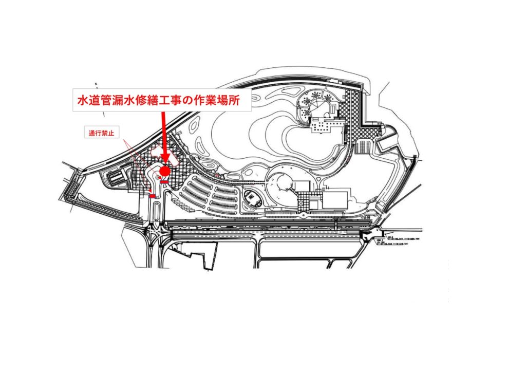 また、お昼頃から数時間の間、公園内は断水します。(工事の進捗状況により時間は変更になります。)